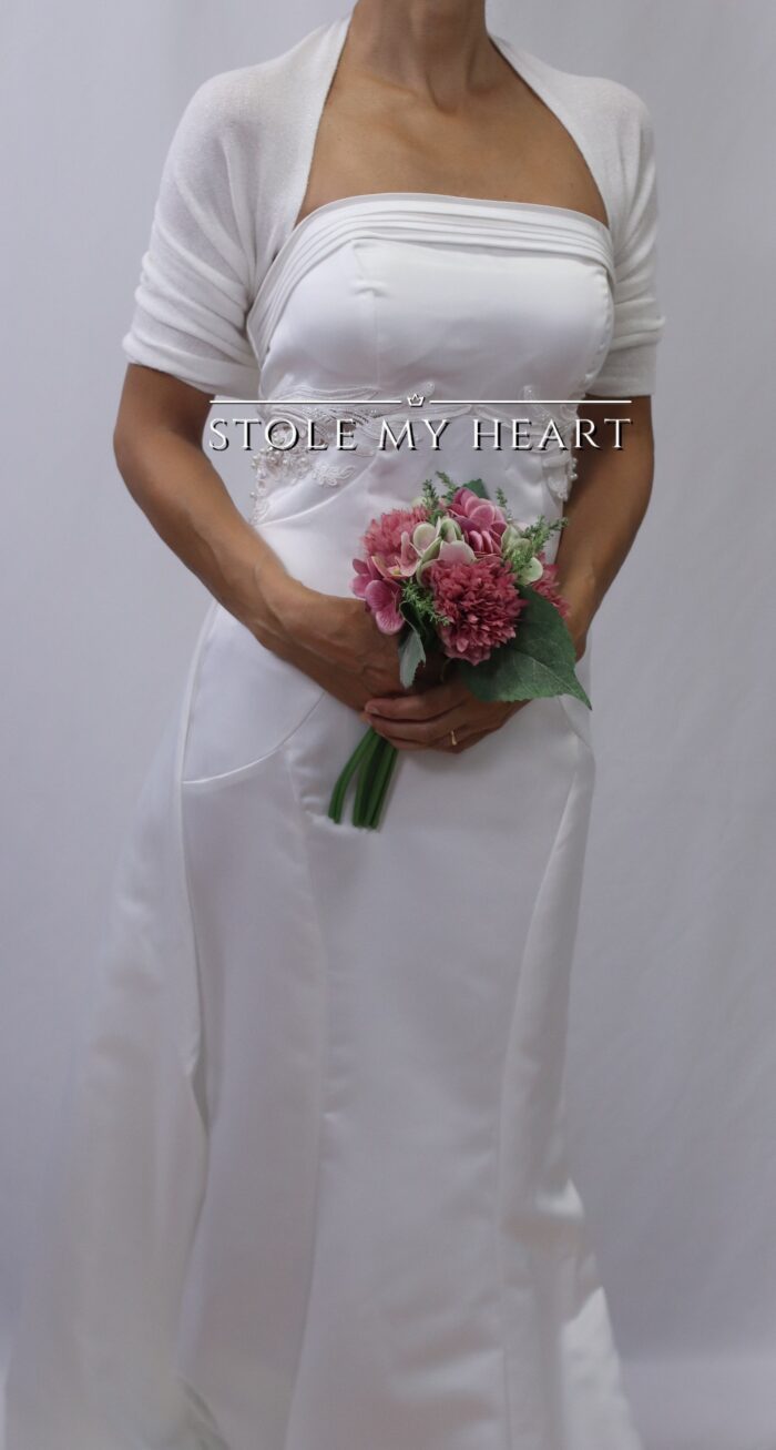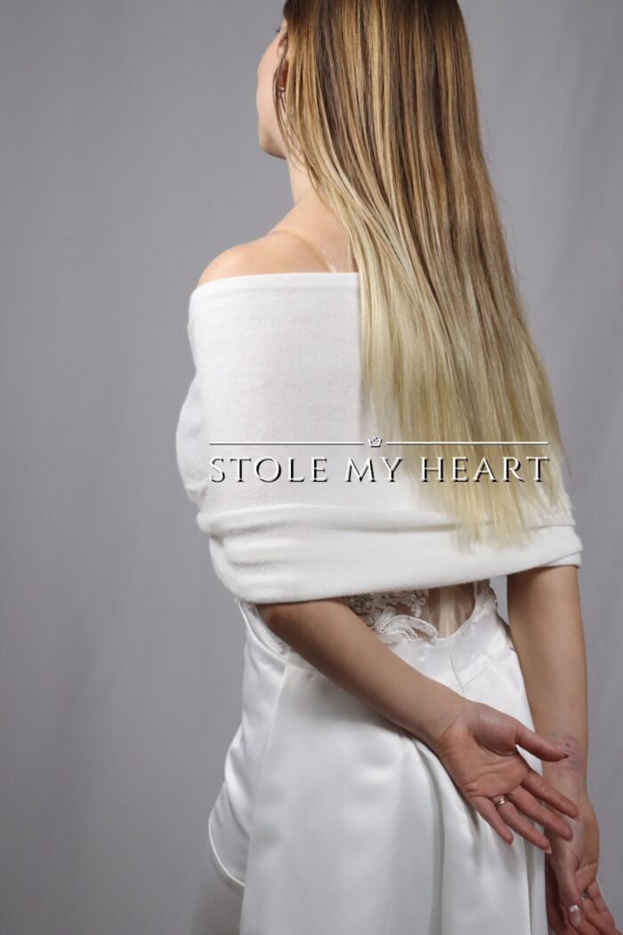 M22 Coprispalle sposa con manicotti in viscosa e angora color bianco latte