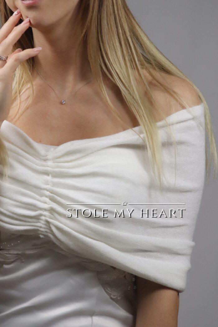A18 Coprispalle sposa ad anello in viscosa e angora bianco latte + lurex trasparente