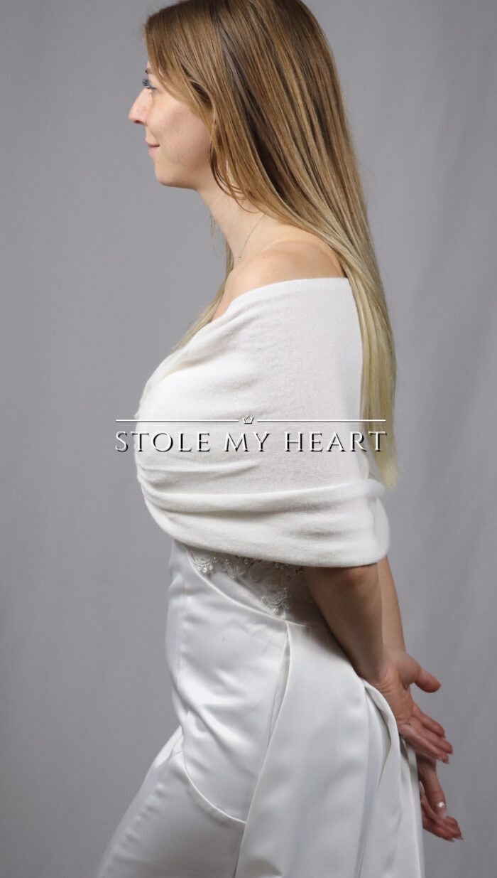 Stola ad anello, per cerimonia, matrimonio color bianco latte