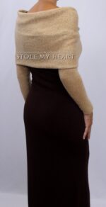 M33 Coprispalle con manicotti elasticizzato beige con lurex oro