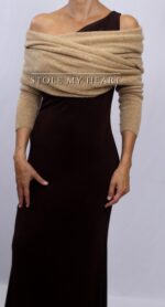 WSR303 Coprispalle, stola rasata in Cashmere beige più un filo di lurex oro: un tocco di classe per le tue cerimonie
