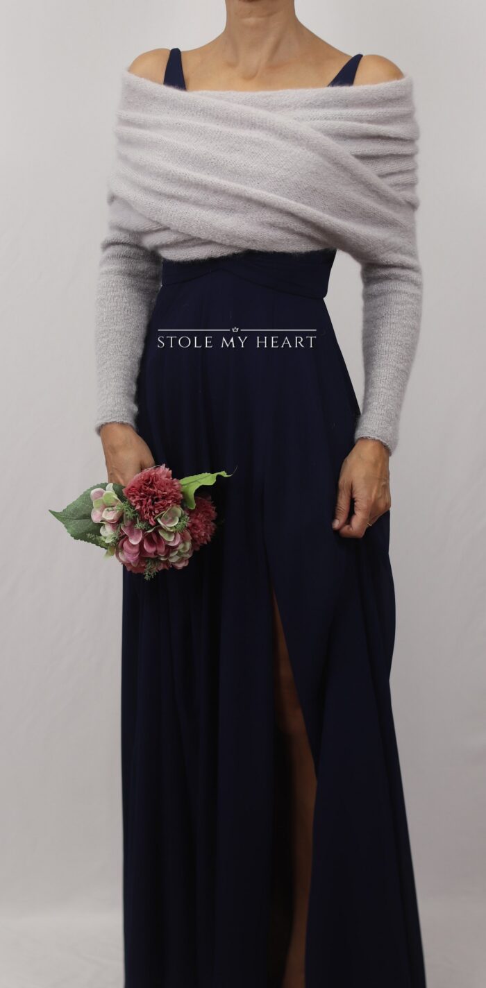 - Versatilità: il grigio perla chiaro si abbina a molti abiti da cerimonia ma anche ad abiti casual per poterla indossare anche dopo il tuo evento e credimi una volta indossato non ne farai più ameno per quanto è morbida e calda