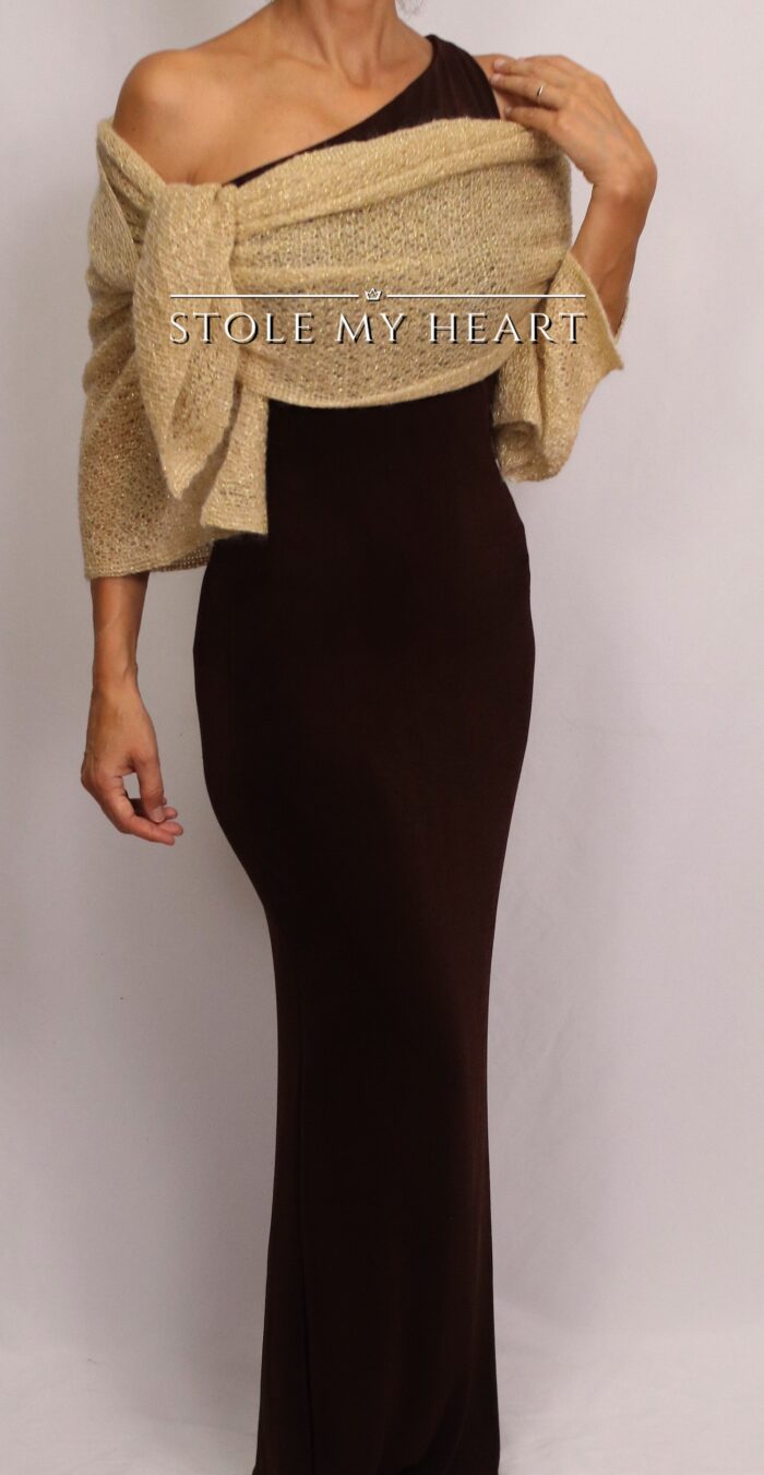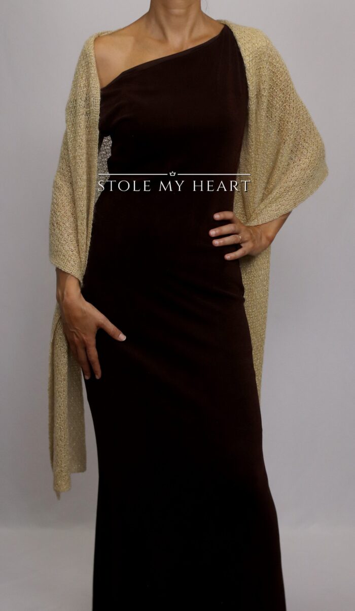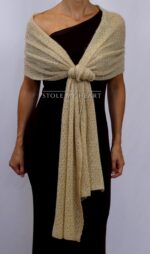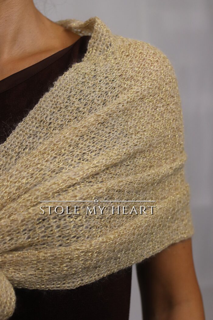 Un vero accessorio da sposa o invitata in caso di freddo, ideale non solo per la cerimonia nuziale, ma anche per eventi come comunioni, battesimi, cresime e feste eleganti. La sua tonalità neutra con delicato lurex oro la rende raffinata e facilmente abbinabile all’abito da sposa o a un look da sera.