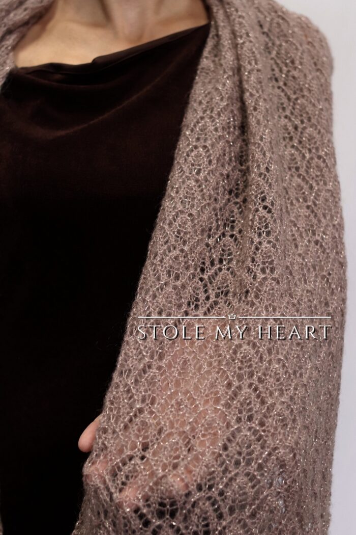 Realizzata con un filato superkid mohair di alta qualità e un delicato filo di lurex oro, questa stola unisce eleganza e comfort. Il punto lavorato “foglia” la rende raffinata e unica, ideale da indossare anche con gli abiti più semplici per aggiungere quella sfumatura luminosa che fa la differenza.